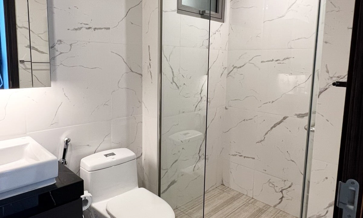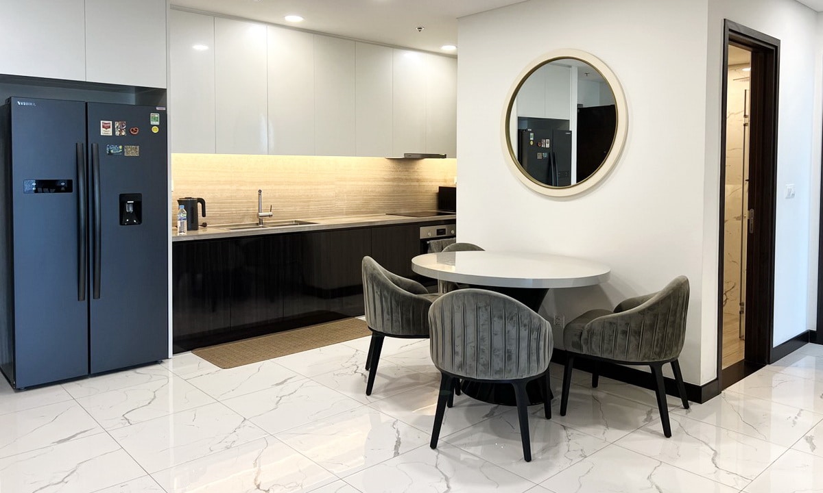 Căn hộ gồm 2 phòng ngủ, phòng khách rộng, 2 phòng tắm & WC, khu bếp – tủ bếp đầy đủ. Nội thất đẹp, phong cách sinh động, phù hợp cho gia đình trẻ hoặc chuyên gia làm việc tại khu trung tâm.