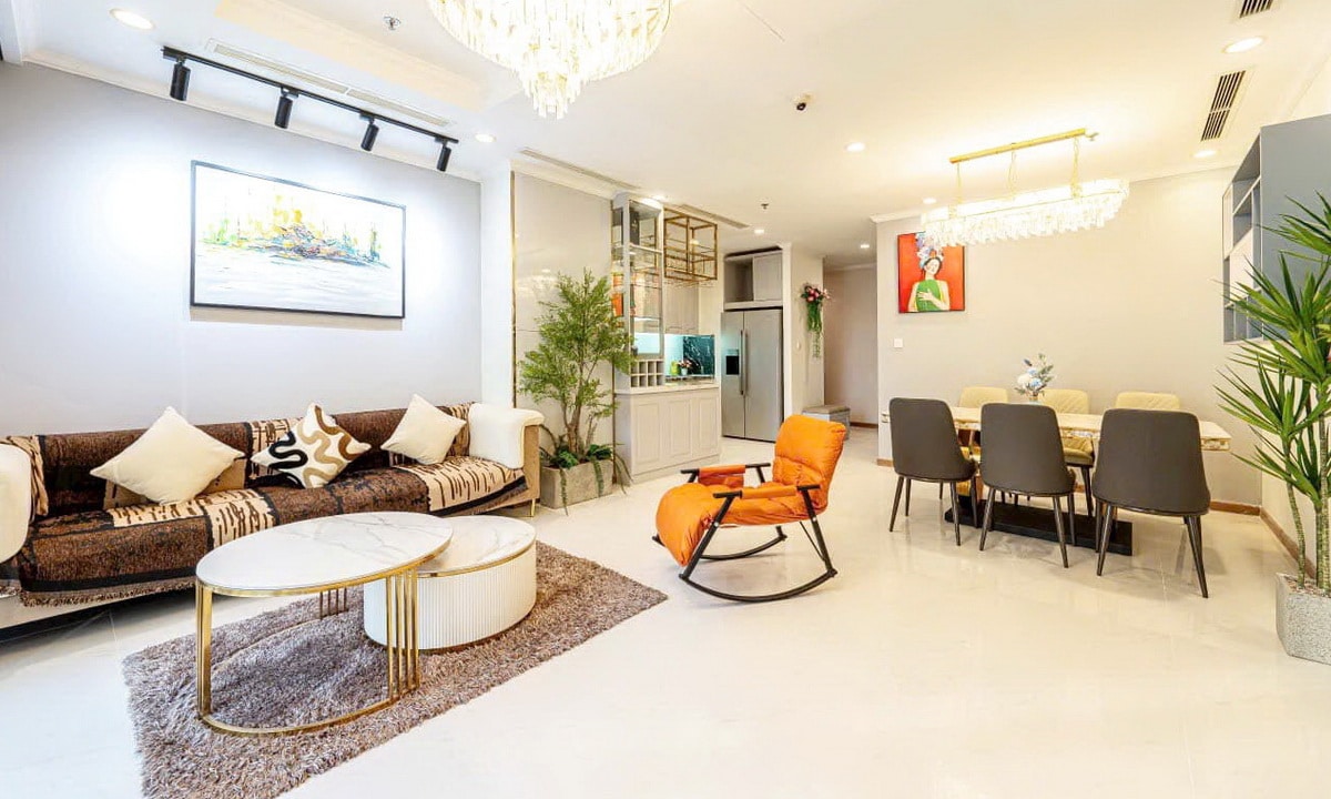 Căn hộ cho thuê Central Park cư dân quốc tế môi trường sống tốt, 3 phòng ngủ, phòng khách, 2 WC, bếp – tủ bếp. Căn hộ Vinhomes Central Park diện tích tổng 120 m², phong cách ấn tượng đầy sáng tạo, hướng view nội khu hướng nhìn rộng mở không khí mát mẻ. Căn hộ Vinhomes Central Park tầng cao block Central 3, có nội thất decor kiến trúc rất riêng.