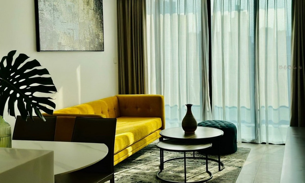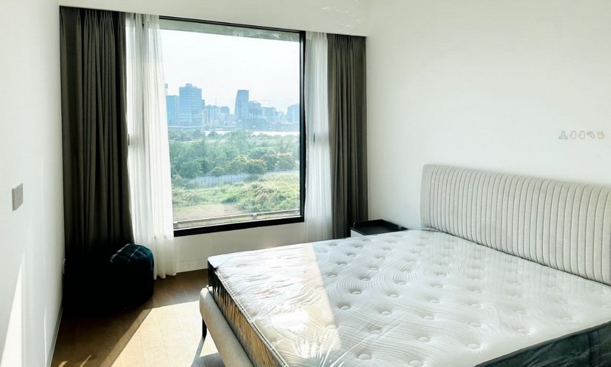 Căn hộ The River Thủ Thiêm cho thuê diện tích thiết kế 64 m², kiến trúc cá tính đẹp sang trọng, hướng view về Bitexco hướng view trực diện yên tĩnh thơ mộng. Dự án căn hộ The River Thủ Thiêm mái ấm qui mô hiện đại sầm uất, 1 phòng ngủ, phòng khách, 1 WC, bếp, giặt phơi. Căn hộ The River Thủ Thiêm nội thất kiến trúc đẹp mắt sẵn sàng ở ngay. Mọi nội thất được lựa chọn tinh tế như sofa tại phòng khách, bàn ăn, giường ngủ, tủ quần áo, rèm cửa,… đều rất sang trọng.