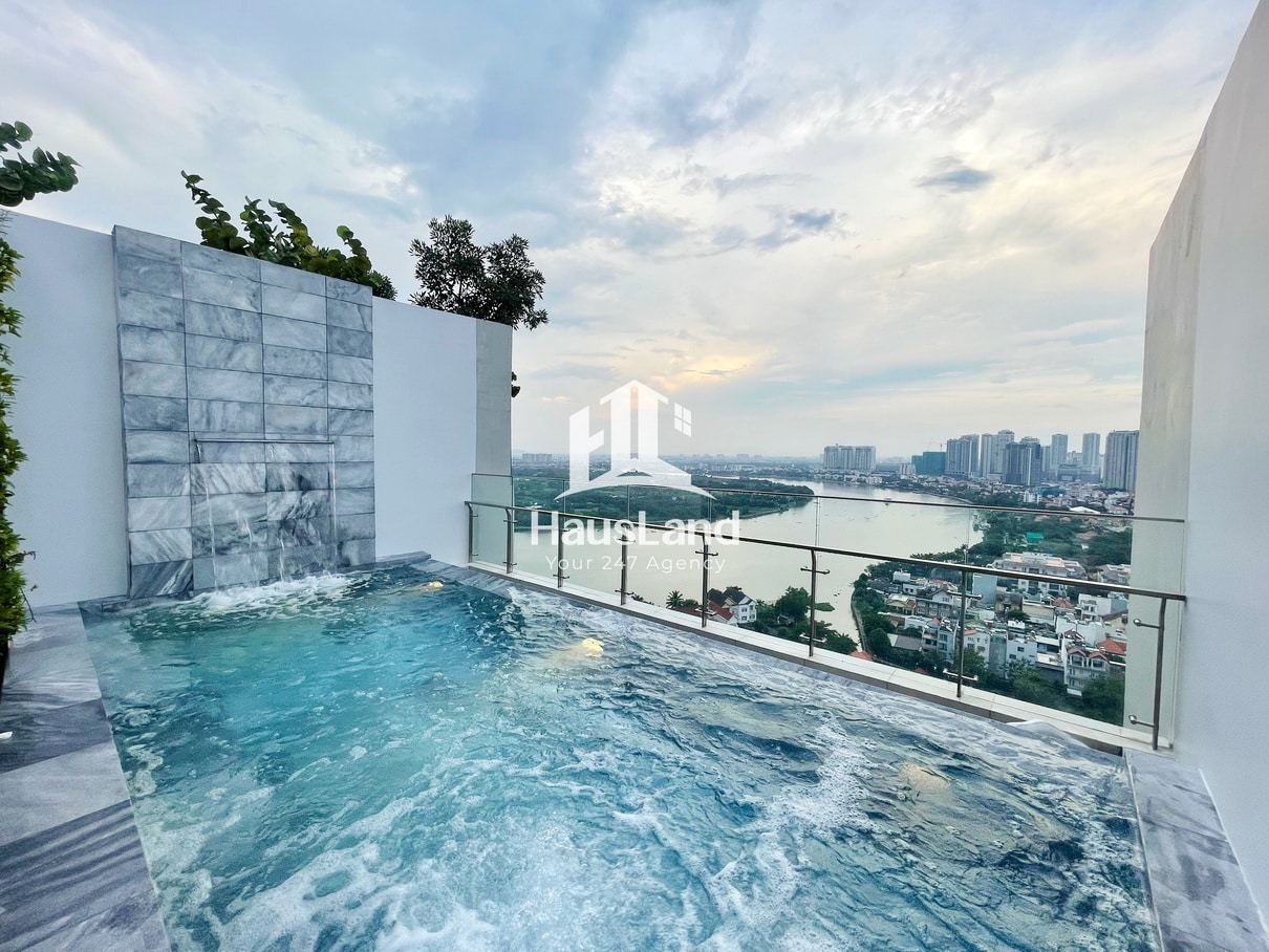 Căn hộ Penthouse duplex 5 phòng ngủ cho thuê D’Edge Thảo Điền nhà trống – Không nội thất, 5 phòng ngủ | 386m2. Thang máy riêng, hồ bơi riêng có sân vườn. Nhà mới hoàn toàn | View sông.