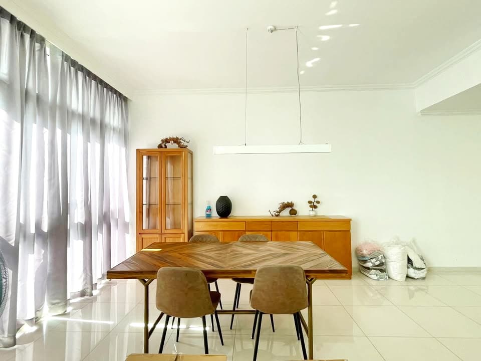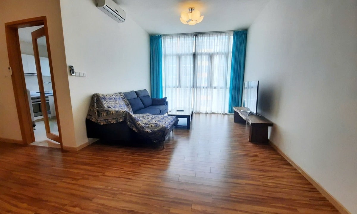 - Phòng khách và phòng ngủ rộng rãi, thiết kế hiện đại với sàn gỗ tự nhiên, mang lại cảm giác ấm cúng.