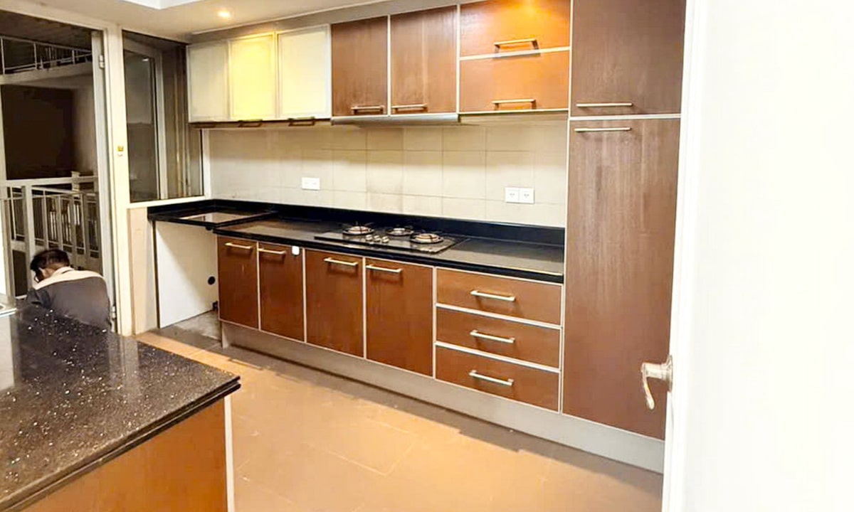 Căn hộ gồm 3 phòng ngủ, 2 WC, phòng khách lớn và bếp tiện nghi. View sông Sài Gòn kết hợp cảnh quan thành phố, mang lại môi trường sống yên tĩnh và mát mẻ.
