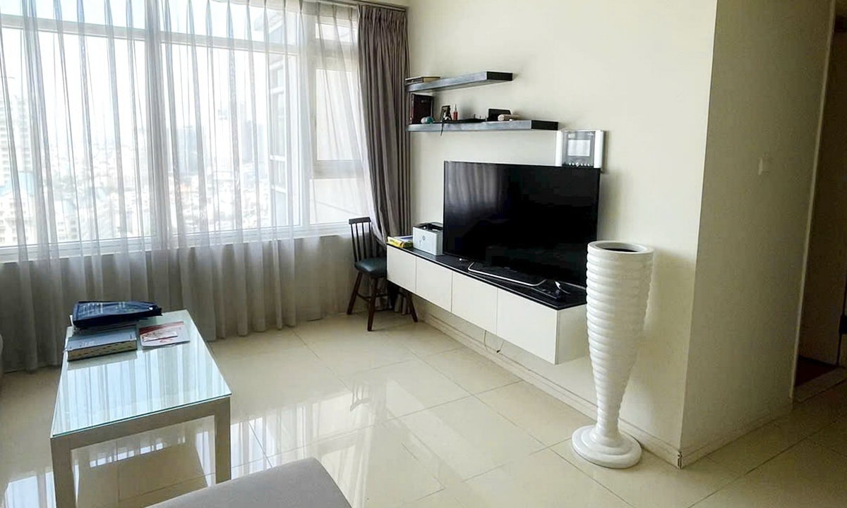 Căn hộ Saigon Pearl cho thuê tại tháp Sapphire, lầu cao, nội thất đầy đủ, phong cách hiện đại và ấm cúng. Không gian sống tiện nghi, bố cục hợp lý, ánh sáng tự nhiên tốt.