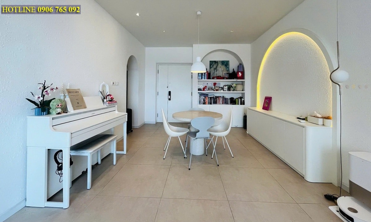 Căn hộ Saigon Pearl cho thuê tại block Sapphire, tầng cao, thiết kế 2 phòng ngủ, 2 phòng tắm, phòng khách và khu bếp tiện nghi. Diện tích 90 m², nội thất cao cấp, bố trí hiện đại, không gian rộng rãi phù hợp cho gia đình hoặc khách làm việc tại trung tâm.